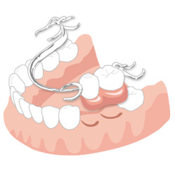 部分入れ歯は、抜けた歯の部分にプラスチック製の土台と人工歯を入れ、残った歯にバネをかけて固定する治療法です。